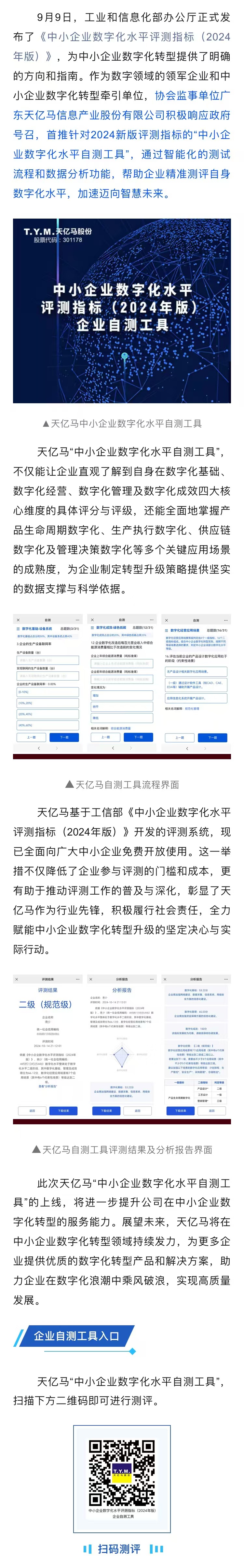 免费开放使用!天亿马推出中小企业数字化水平自测工具