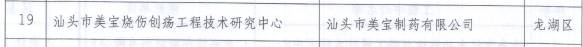 12月1日,汕头市科技局公布了“2017年度汕头市工程技术研究中心(第二批)认定名单”,我协会会员单位汕头乐凯胶片有限公司设立的“汕头市感光材料工程技术研究中心”、汕头市昂斯鞋材有限公司设立的“汕头市鞋服材料工程技术研究中心”、汕头市美宝制药有限公司设立的“汕头市美宝烧伤创疡工程技术研究中心”、广东韩江轻工机械有限公司设立的“汕头市金属制罐智能装备工程技术研究中心”均入选。